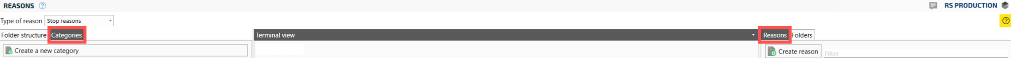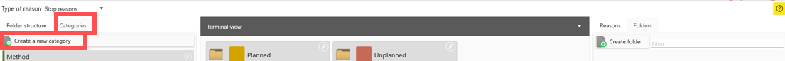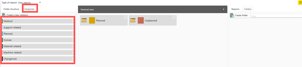 RS Production is distributed with default categories like Planned, Material related, Machine related, Method related. It is up to you own organisation what categories you want to use.