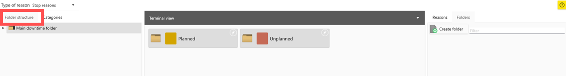 Remember that folders are only shown to operators. They are here to make it easy for them to find the right reason code. Folders are not shown in reports.