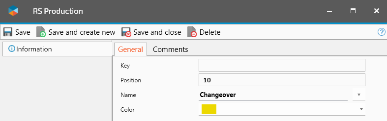 Note that in versions prior to Neon (23.x.x.xx) the category “Machine” have a special position in RS Production. It is used to calculate the maintenance performance indicators (Technical availability, MTBF, MDT).