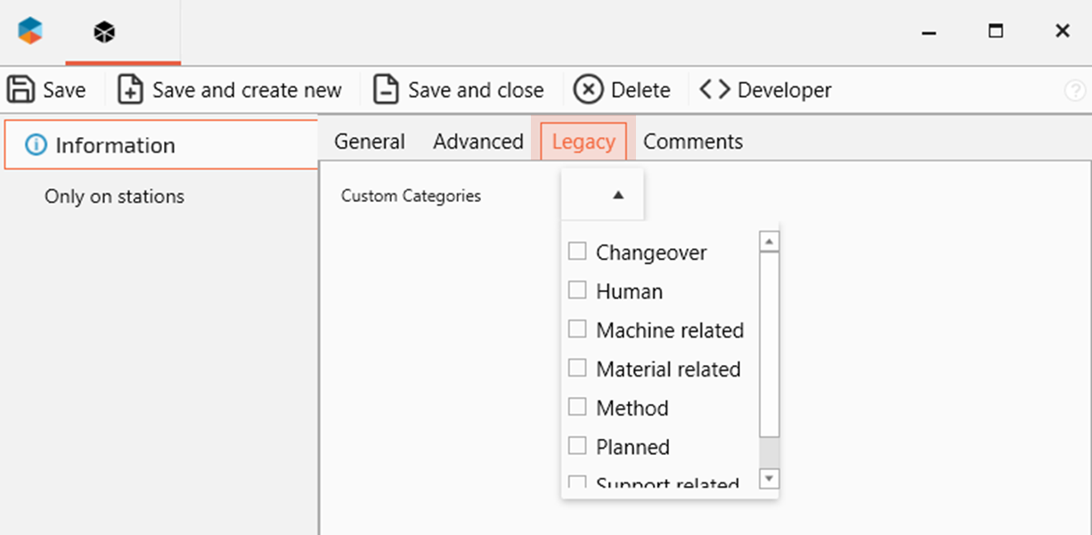 Now it is time to look at custom categories and maybe add one ore more custom categories for your reason codes. Read more about Reason codes, categories and station codes .