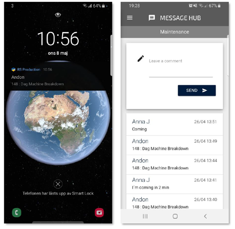 It is also connected to RS Productions internal messaging system. It makes it possible to have a chat dialogue between the operator and the support resource who is replying on the Andon call.