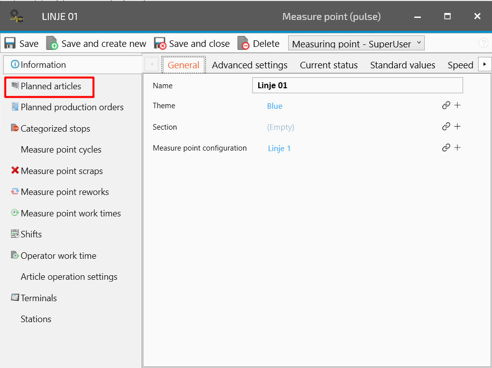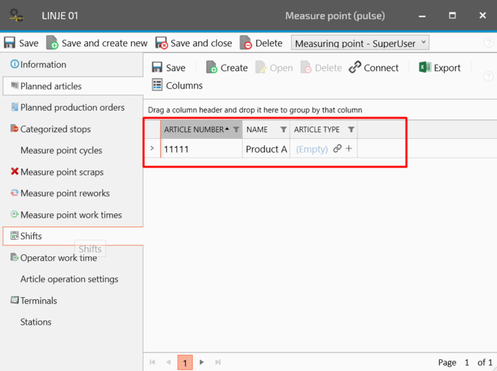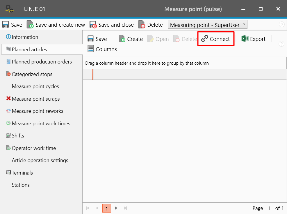This guide helps you to connect the measure point to schedule, reason codes and articles. This is fundamental to calculate the OEE and break down the disturbances.