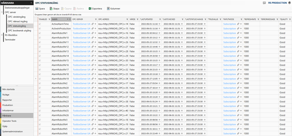 Make sure all OPC Status inputs are correct. (Hardware -> OPC Server -> OPC Status input)