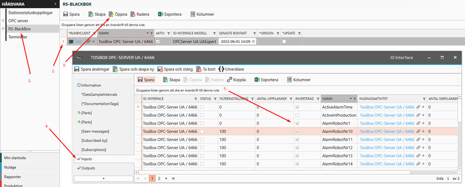 Click the check box (5.) for INVERTED. Then Save and close.Go to Hardware -> RS-Blackbox -> Run signal connections