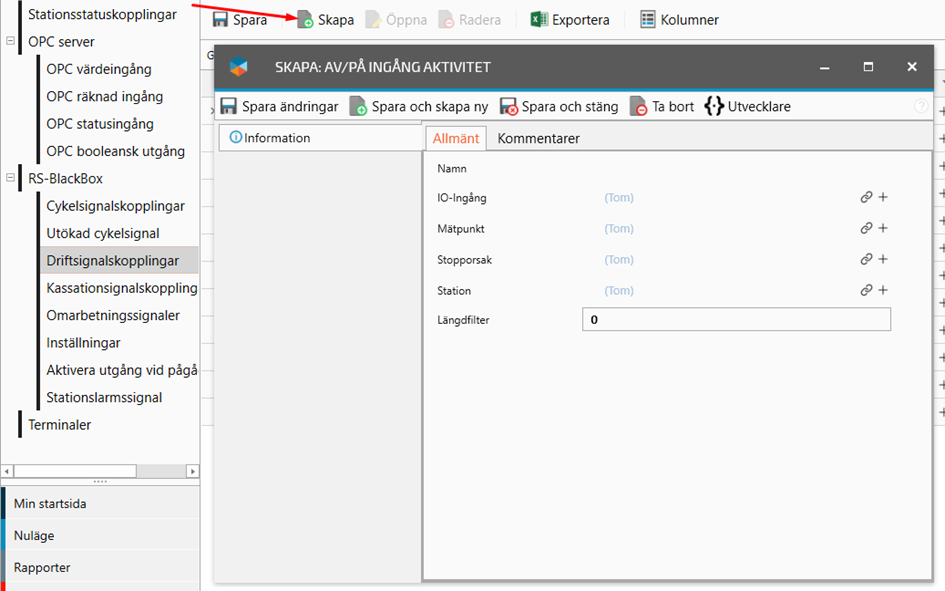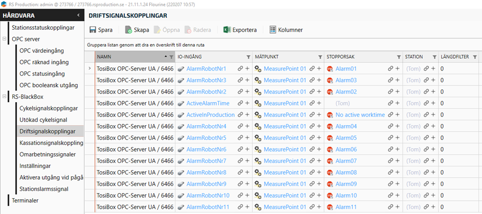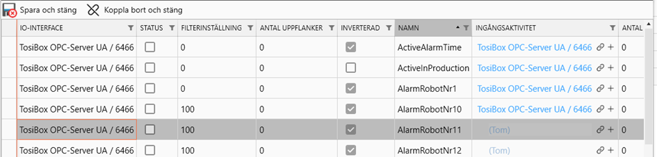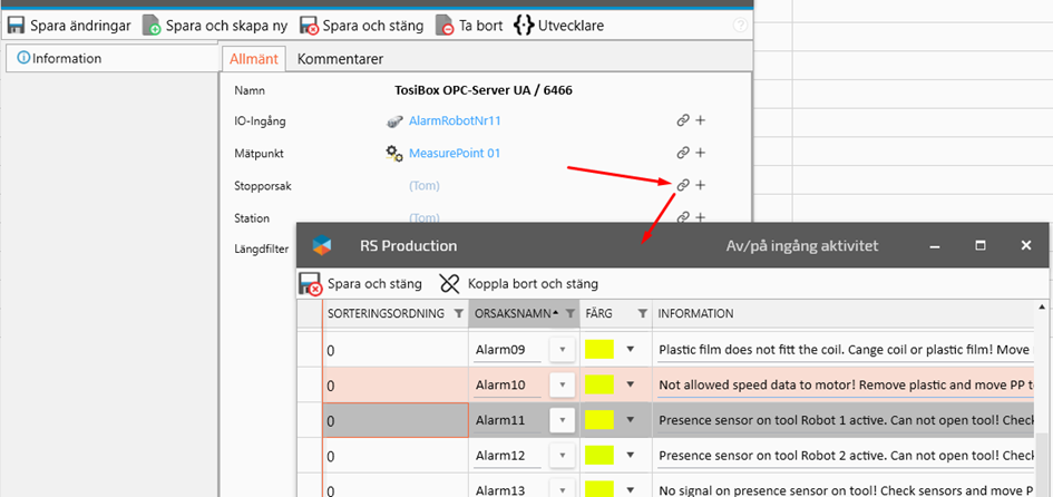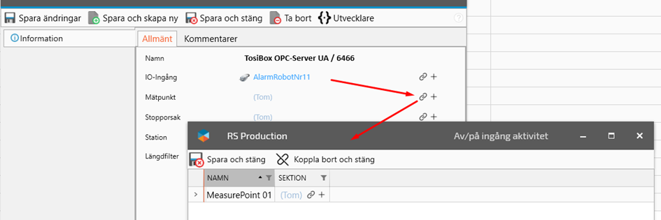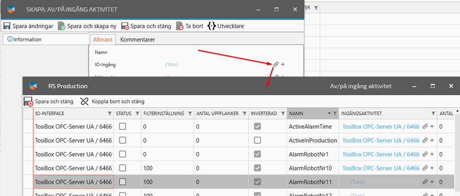 Connect the IO-Input by clicking on the link icon to open a new window with your OPC status inputs.
