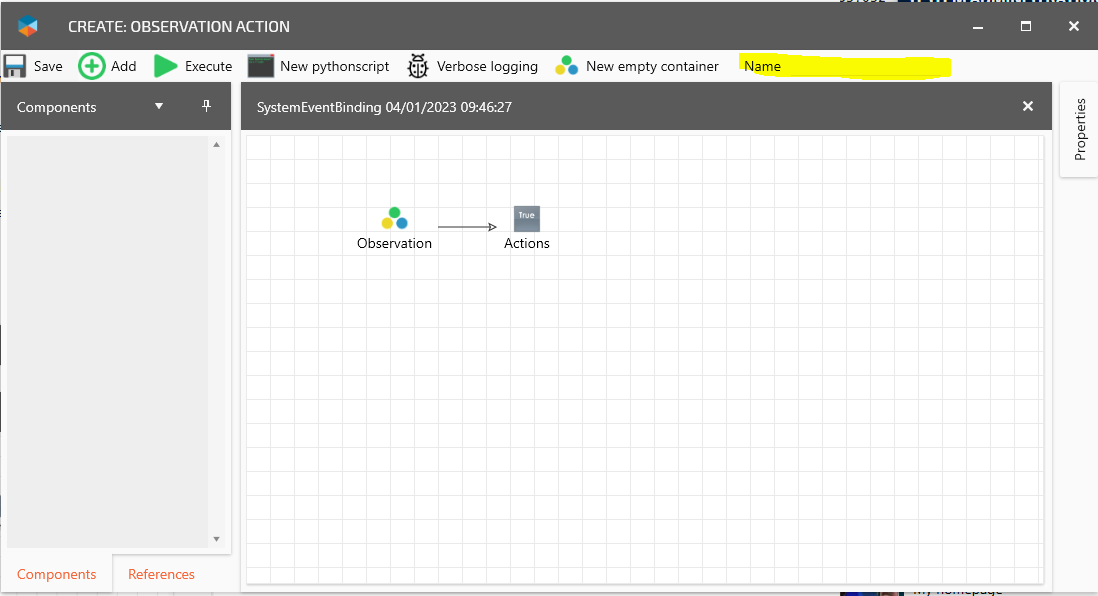9. Click on the Tab “SystemEventBinding XX/XX/XXXX XX:XX:XX” and then double click o “Actions”