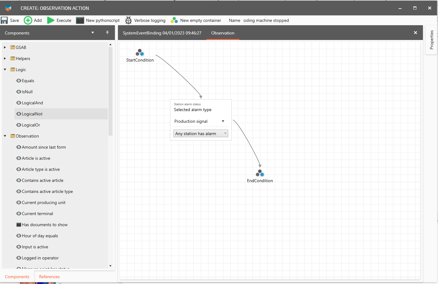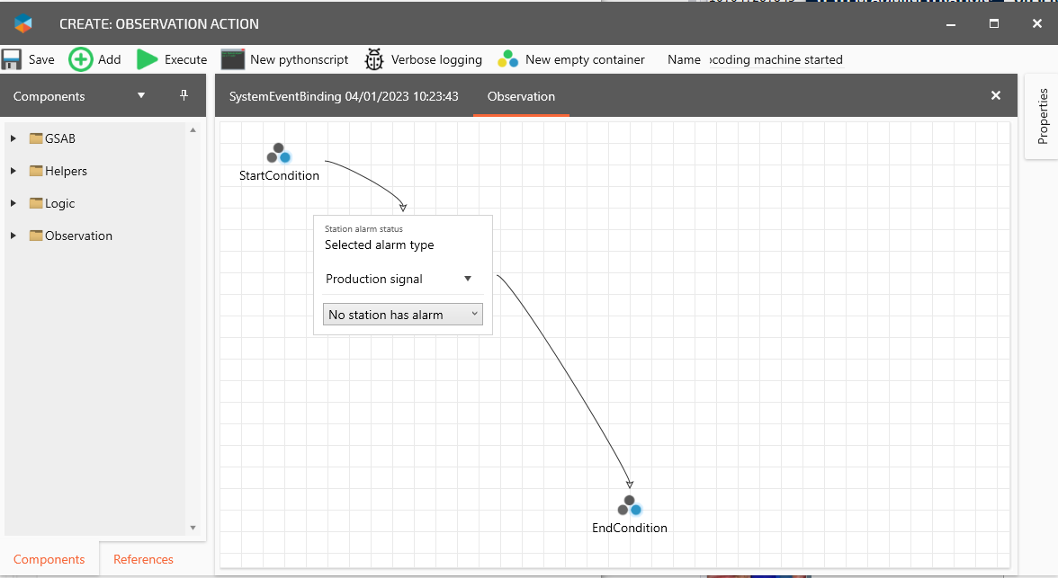 9. Select the “Station alarm status” component, press and hold “Alt” key and click on “EndCondition” component.