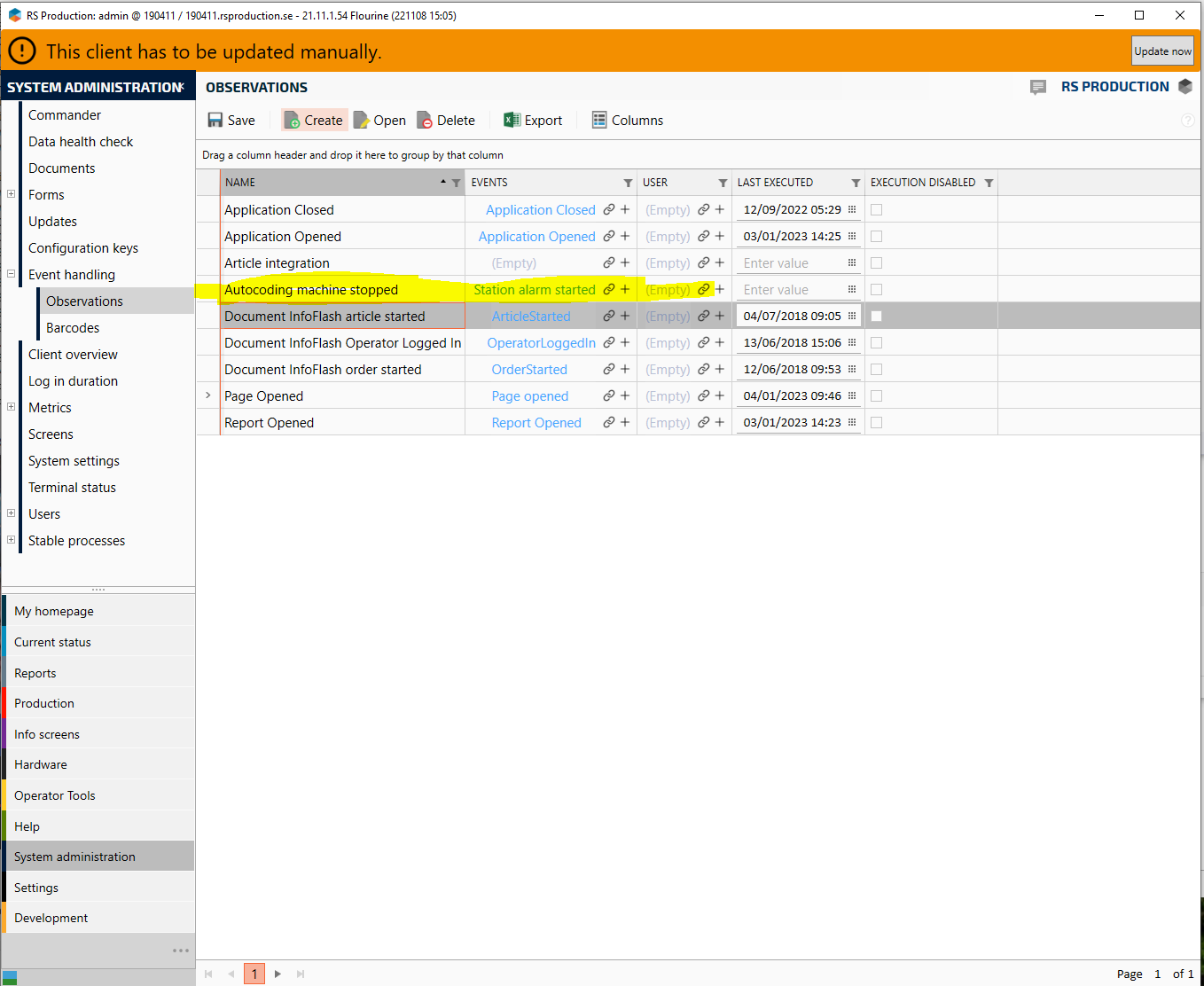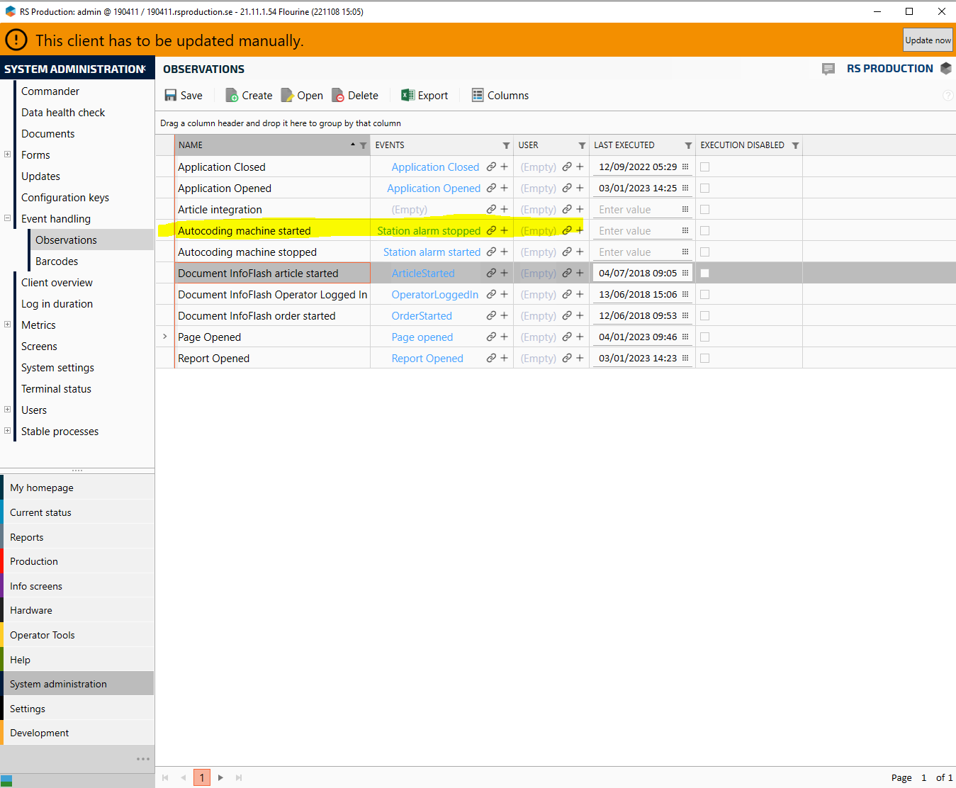 RSProduction can handle a wide variety of automatic stop reason coding and stop handling. This guide will explain what could be done to some extent in the most common case but the events and observations could be modified to do even more logic and variants.