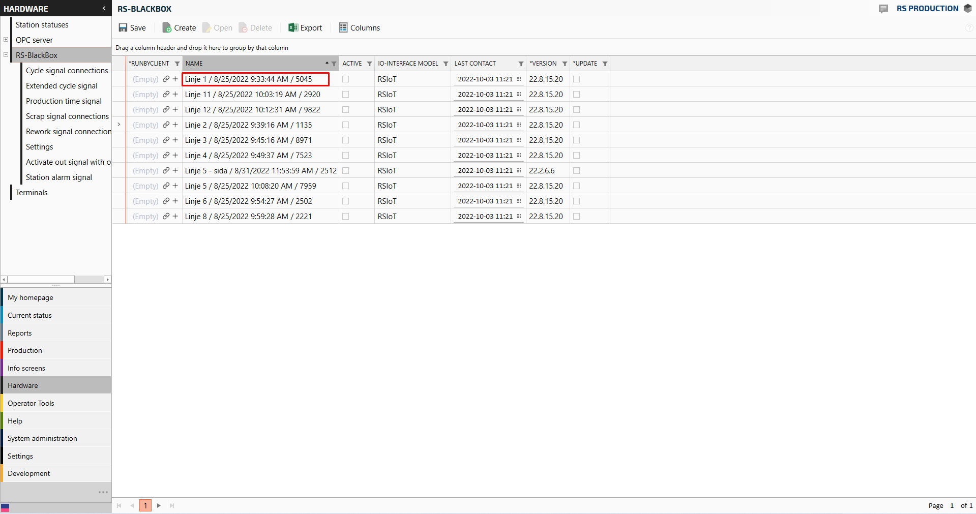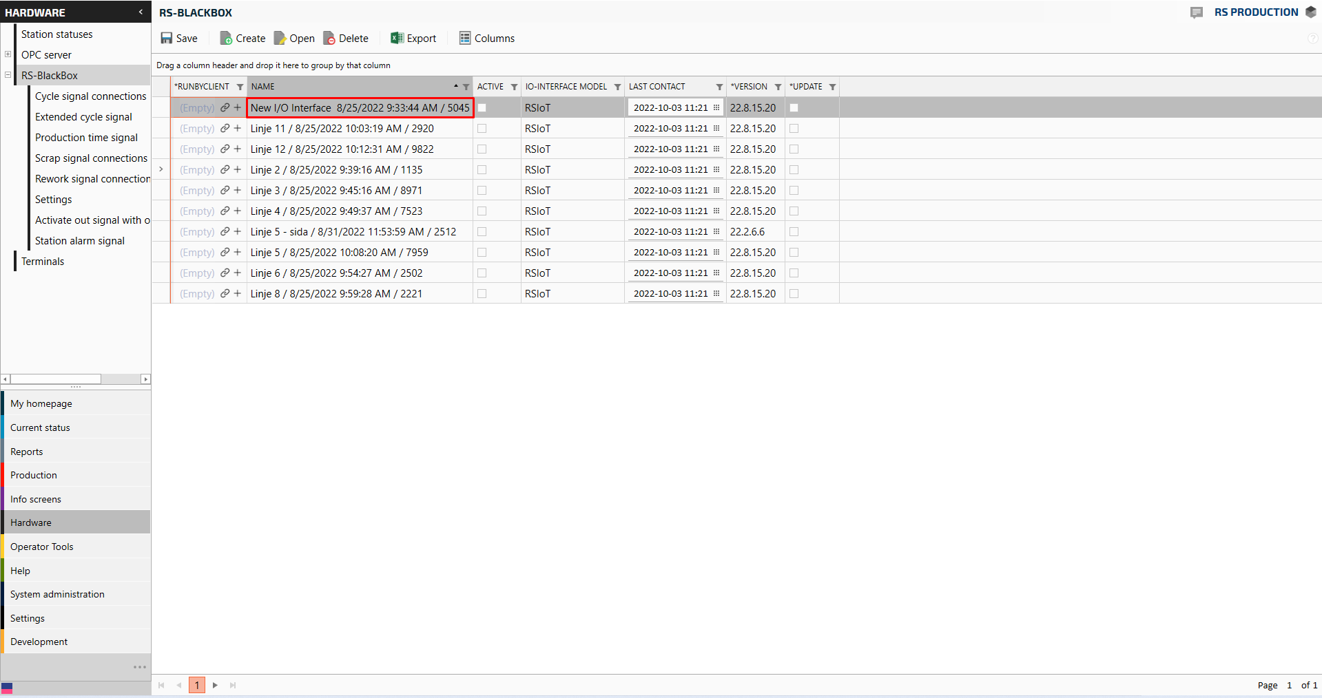 First the IoT box need to be configured in RS Production, then the signals can be “created”. Go here to understand What kind of machine signals can RS Production handle?
