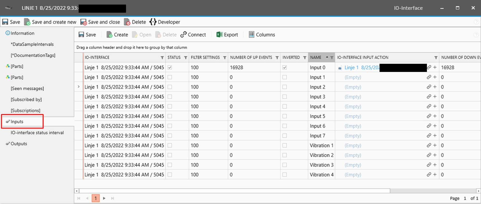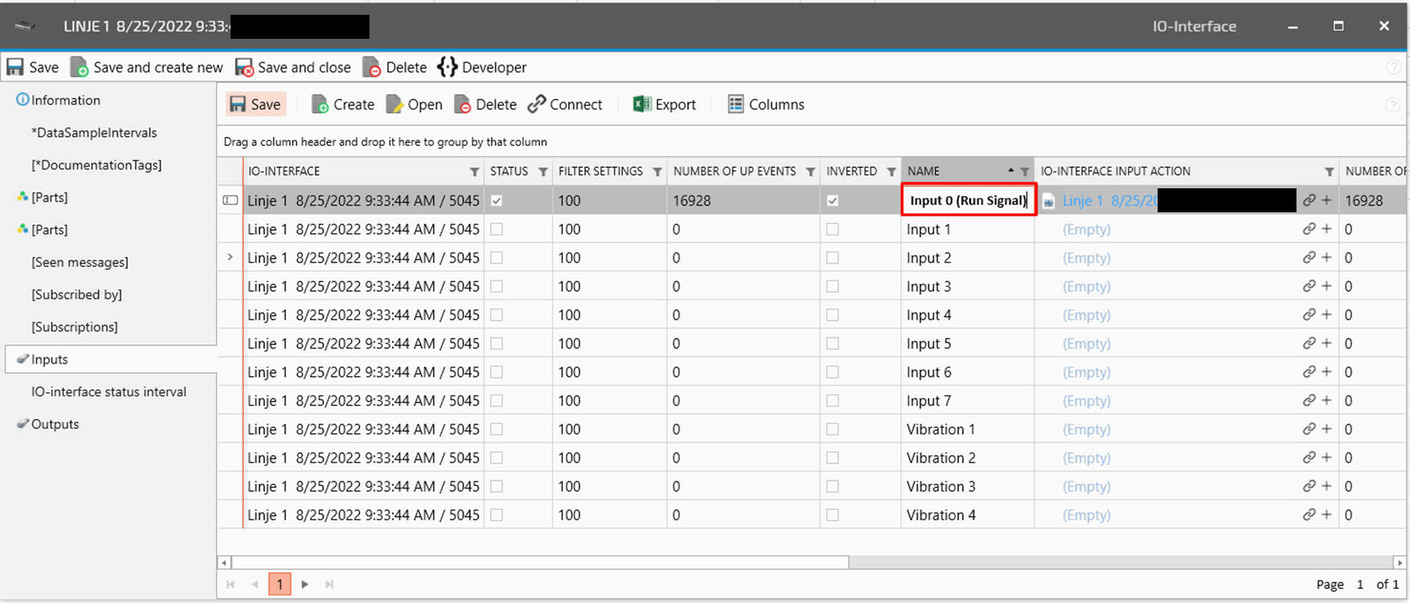 Ad the measure point name before the existing name and delete “New I/O-interface”, but keep the dates.