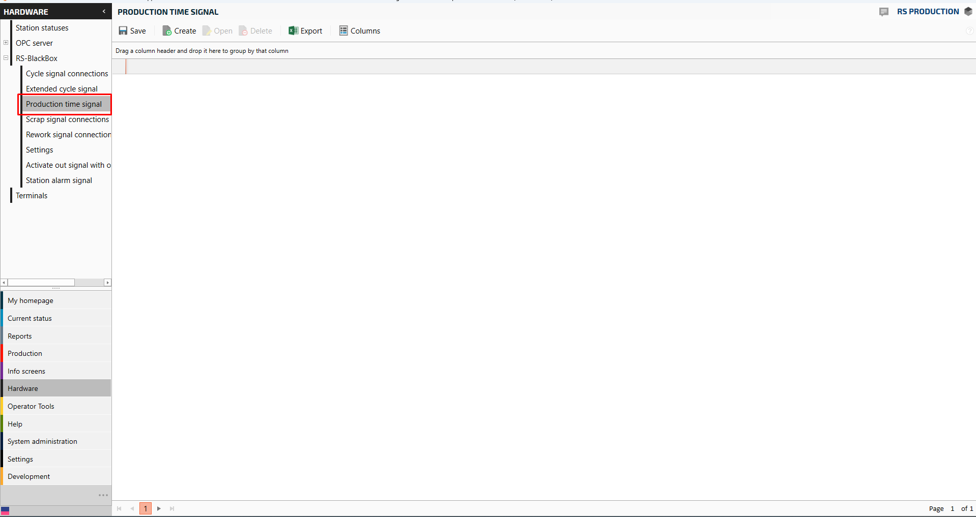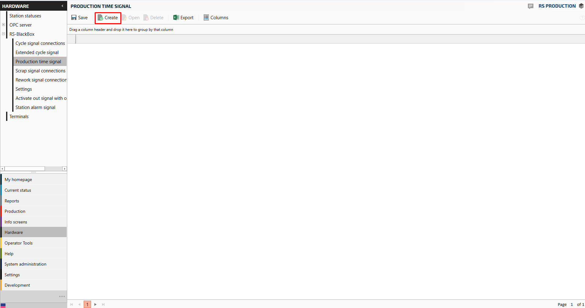 Before creating the tags as signals on the blackbox, you first need to Connect OPC server and OPC tags in RS Production
