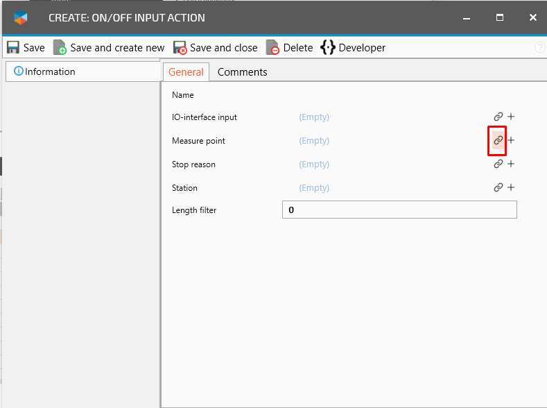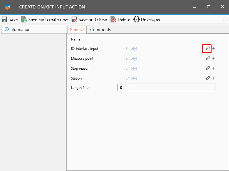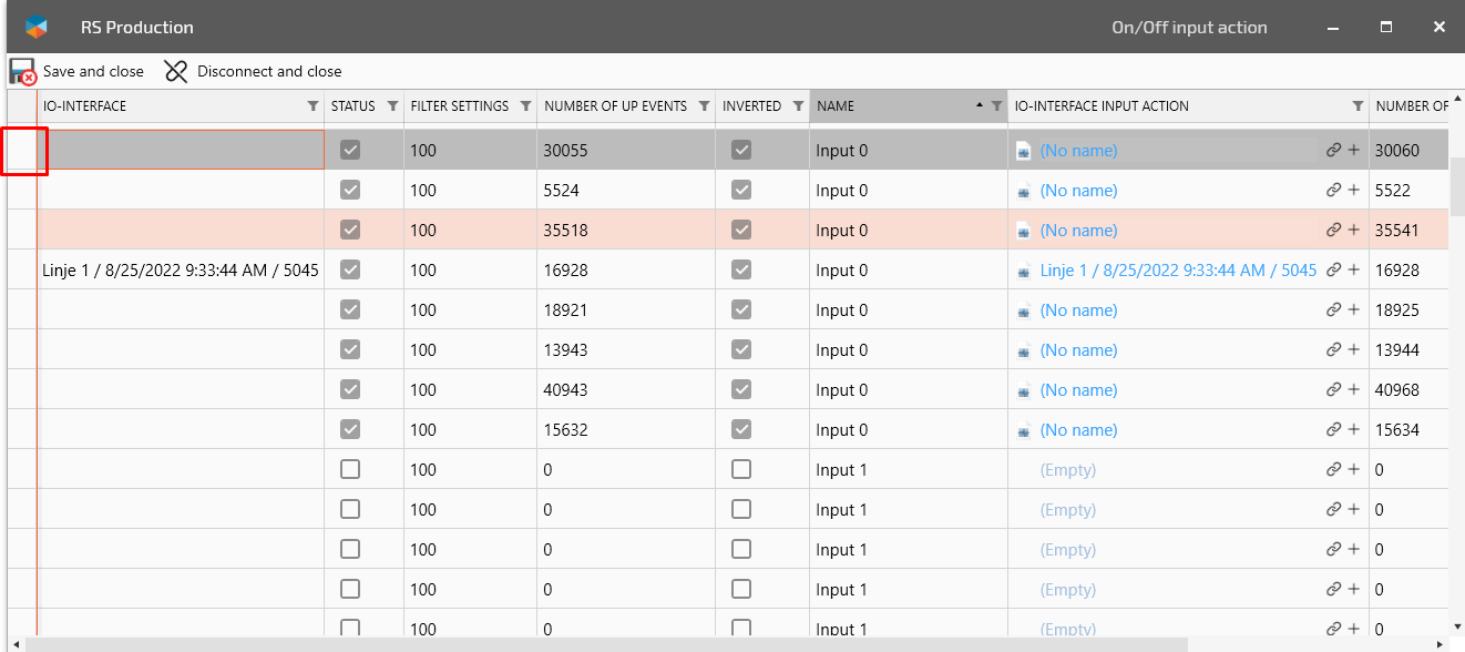 Click on the Connect icon for IO-interface input
