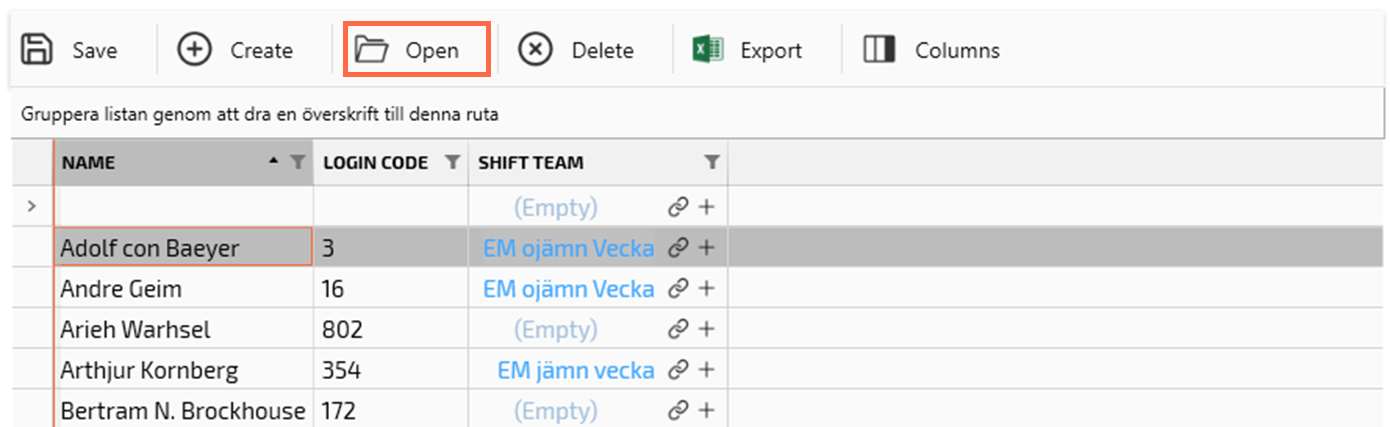 By setting an Operator to a Shift team, you can match the operator with the work shifts in the shift scheduling.