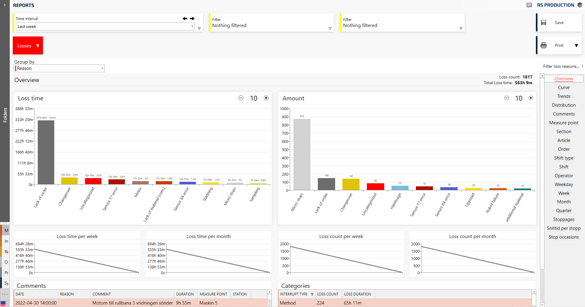This pages gives you an understanding of RS Production abilities to tag losses and describe why/where OEE loss happens.
