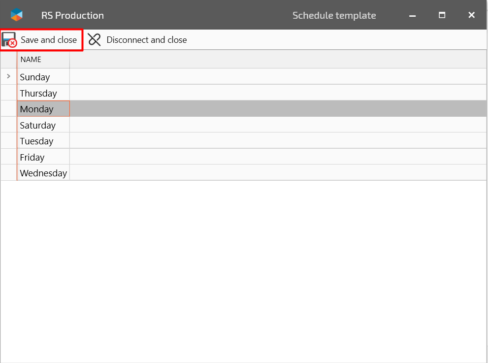 Finally click Save and exit the editor for the schedule template.