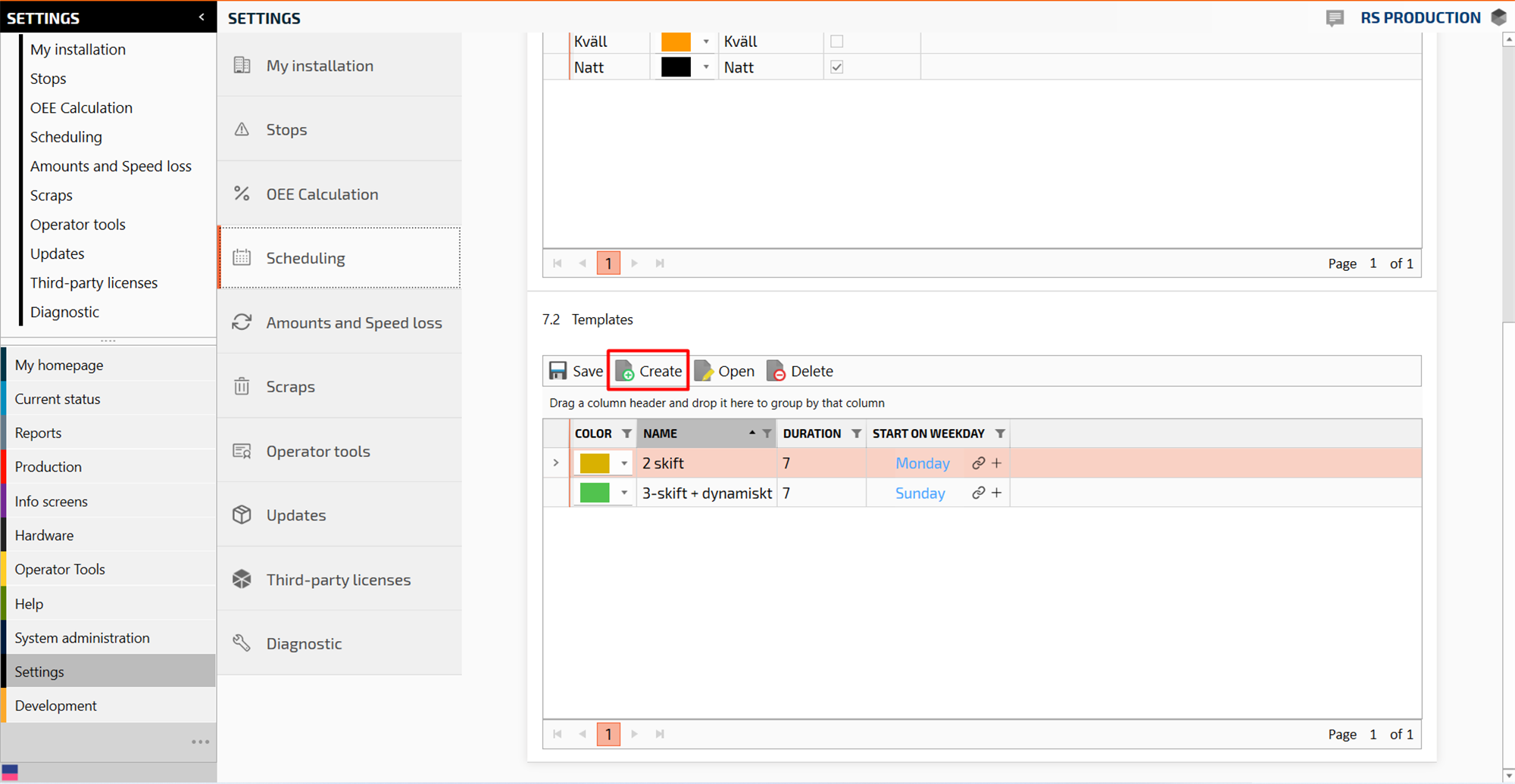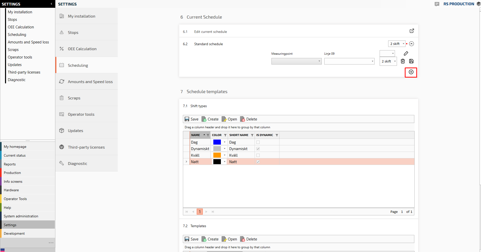 Go to section Schedule templates