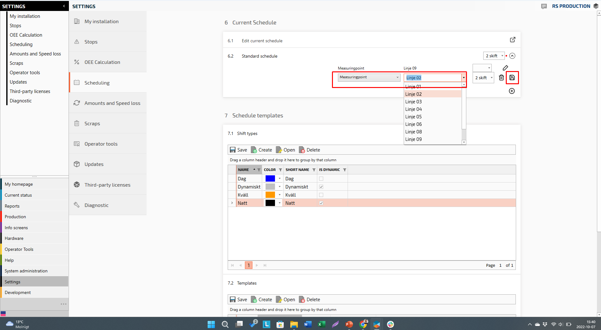 RS Production will calculate OEE during scheduled time, hence a schedule is required to get data in the reports.