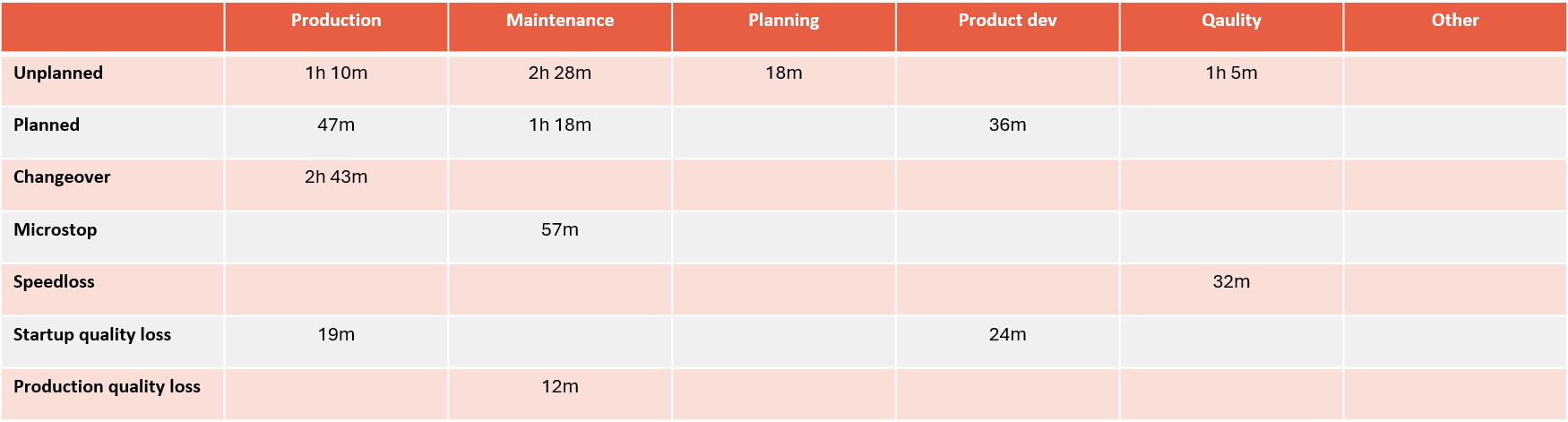 Unplanned | For stop reasons (and used for stops and speed losses) |