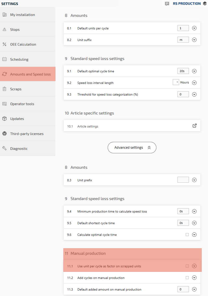 Scrapped amount can be registered automatically or manual. Read more about What kind of machine signals can RS Production handle?