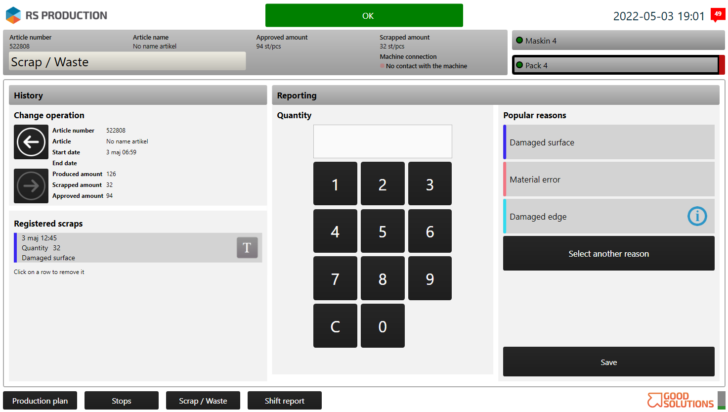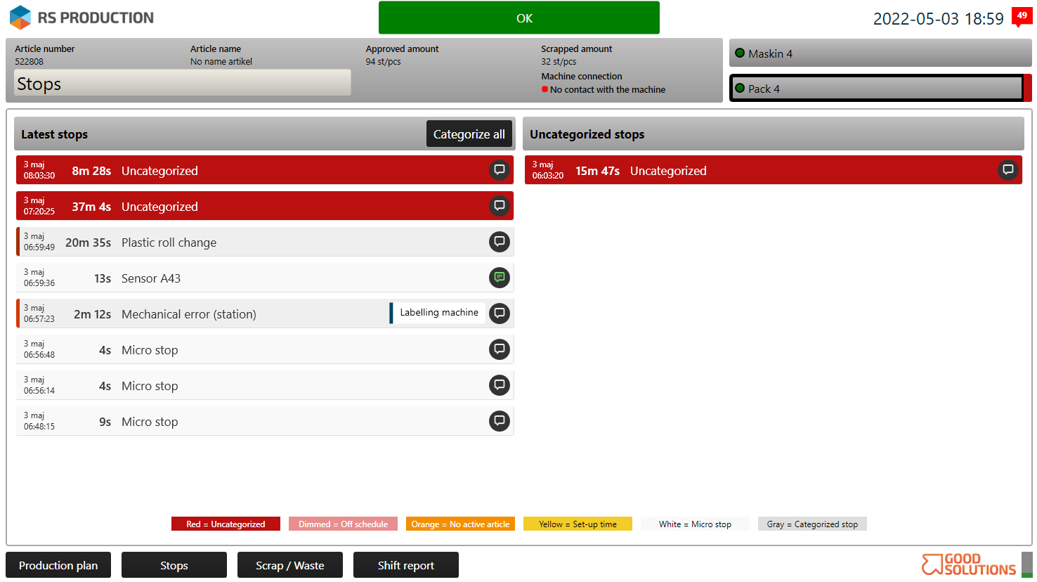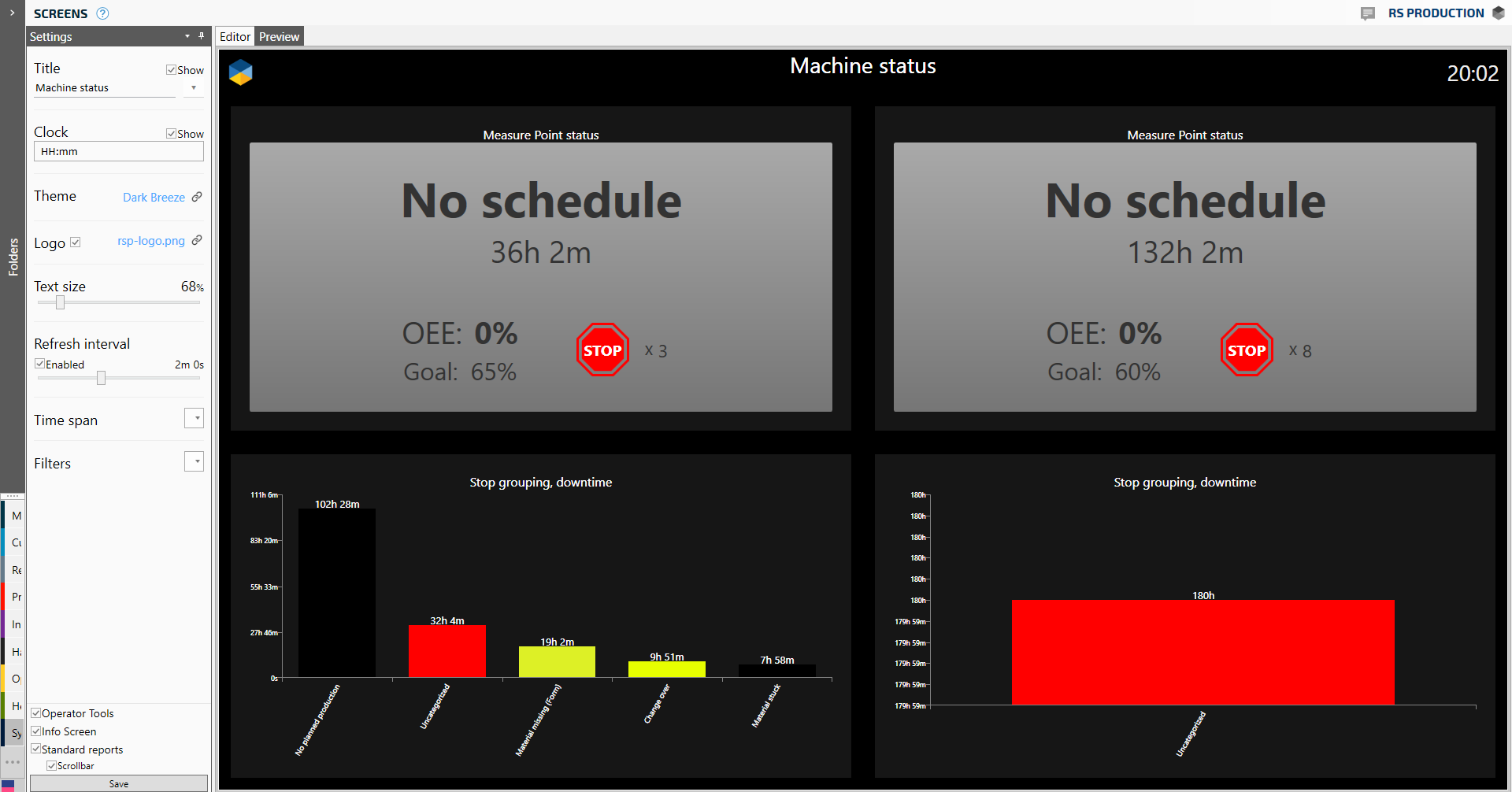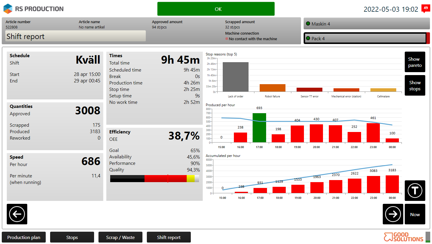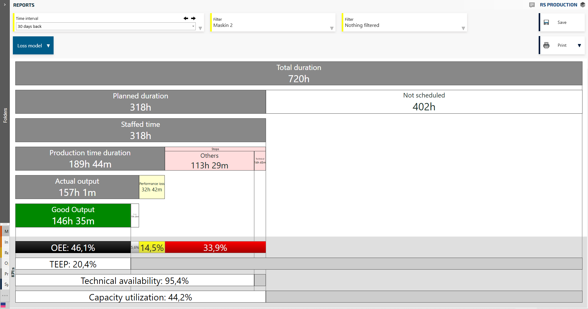 RS Production® OEE gives you the insights needed to make better and fact based decision. It help you cut production costs, get real-time control, and use fewer resources per produced unit. Improving Overall Equipment Efficiency (OEE) is both profitable and sustainable.
