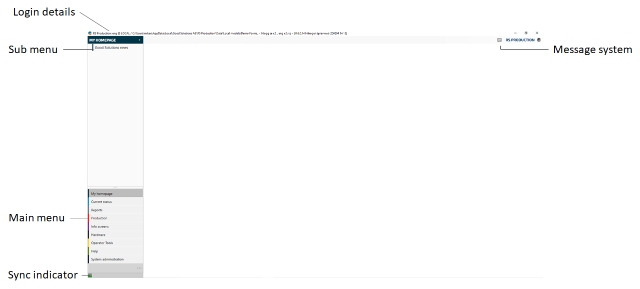 So that you do not have to wait for all historical production data to be downloaded, the program starts as soon as all configuration data and two months’ (this can be changed locally by an RS Production technician) production data has been loaded.
