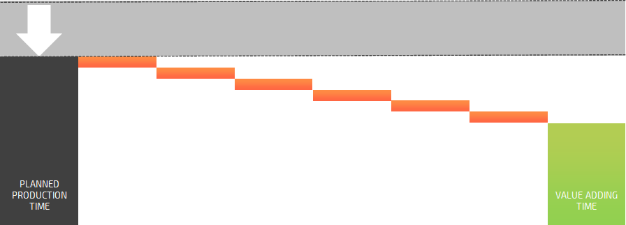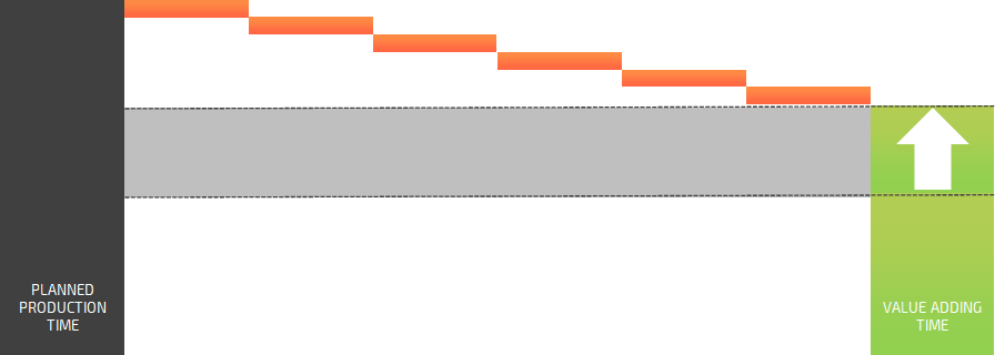 To reduce the planned production time and keep the value-adding time, you will have to minimize some losses.