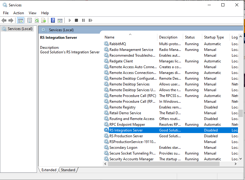 18. Find the Edge Service (named RSIntegration Server) in the list and rightclick on it