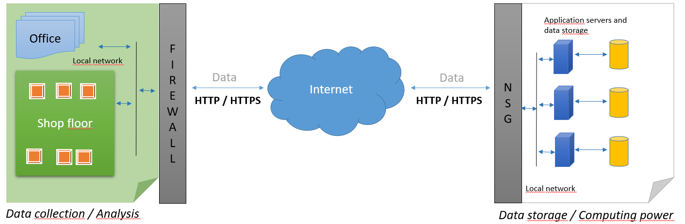 The factory needs to allow outgoing HTTPS (443) traffic in its firewall to connect to the cloud service.