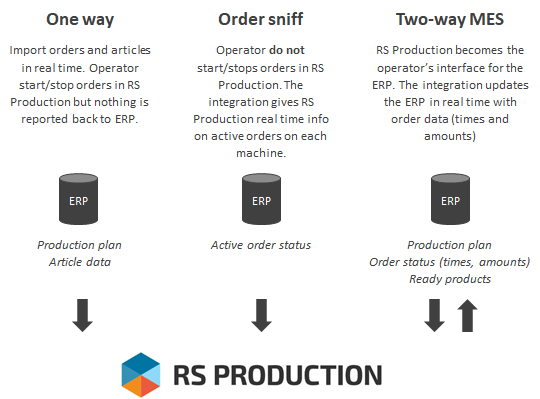 What data is integrated like this? | Mainly used to for one time import of article/product data, often at system setup. At the moment, there are no standard CSV-file structures ready to be imported. But any RS Production delivery consultant can set up any type of import needed. |