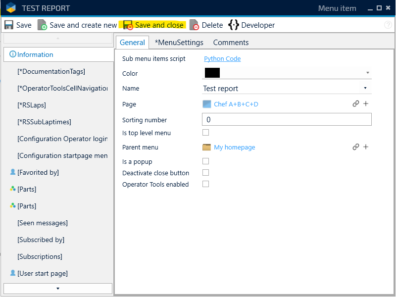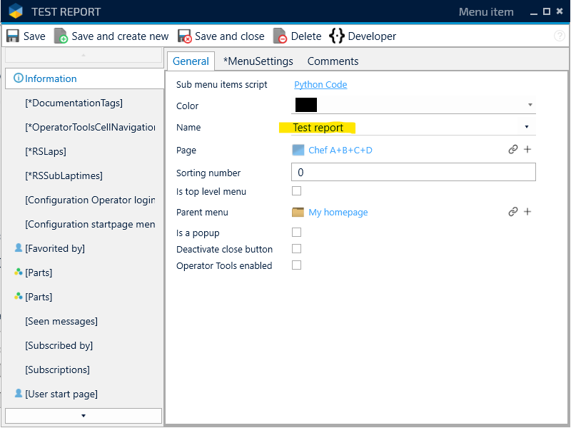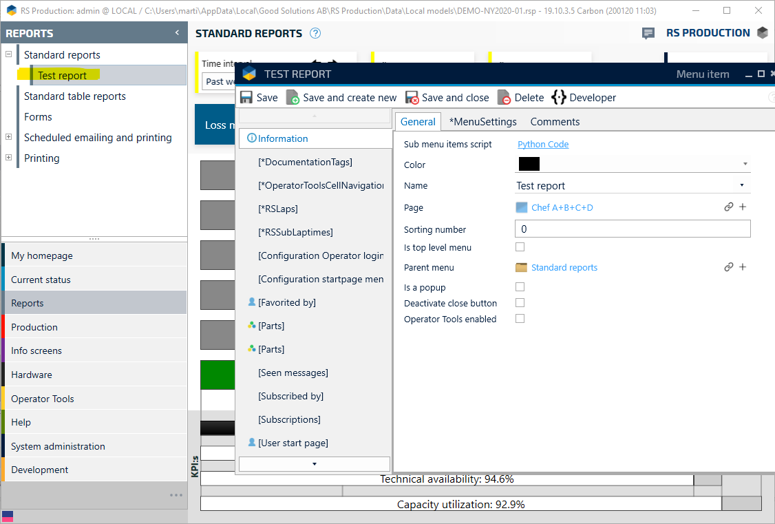 2. Press and hold Alt on your keyboard and klick on the report that you want to change name on. In this case we choose Test report
