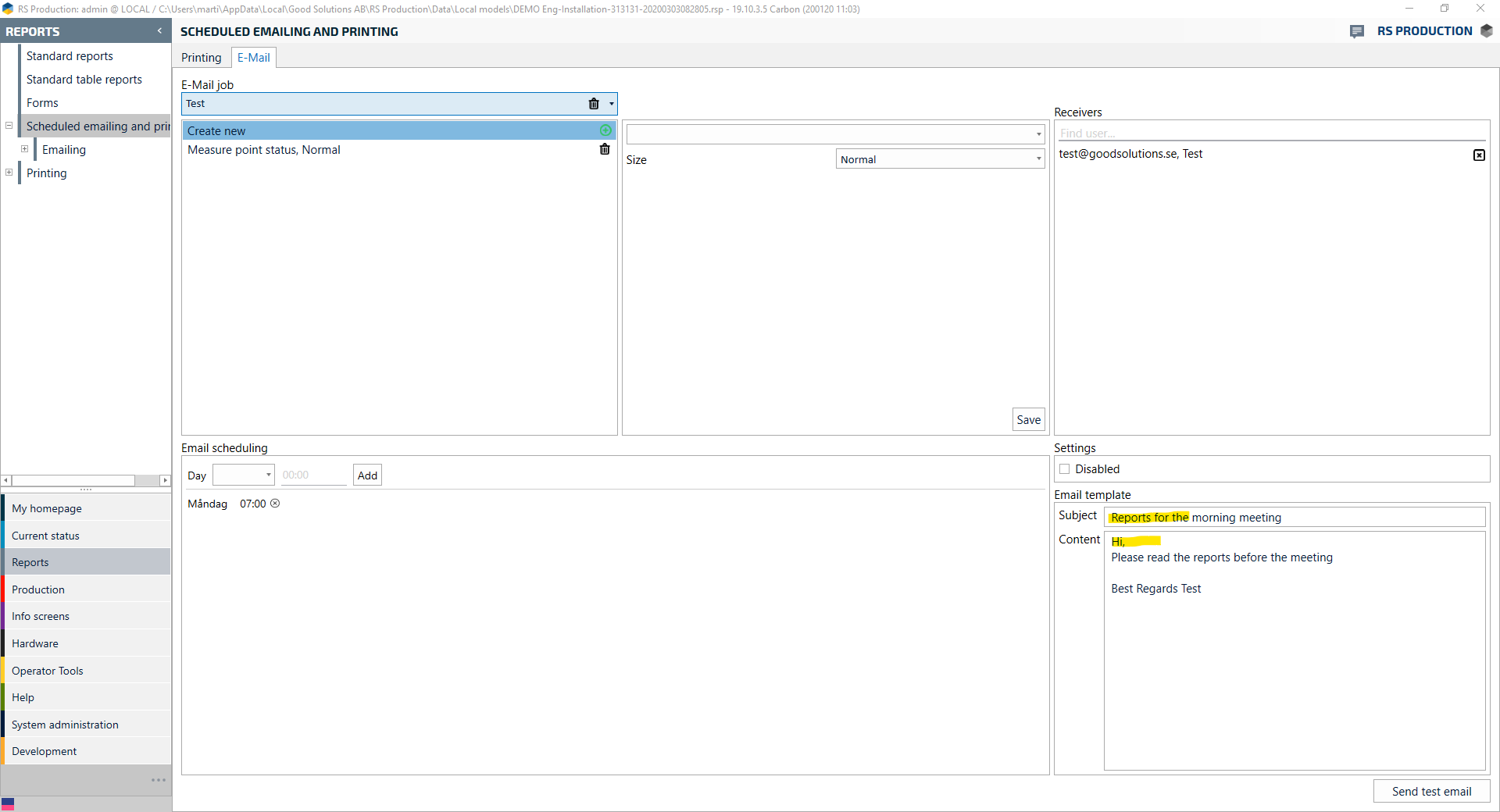 Send reports with scheduled email
