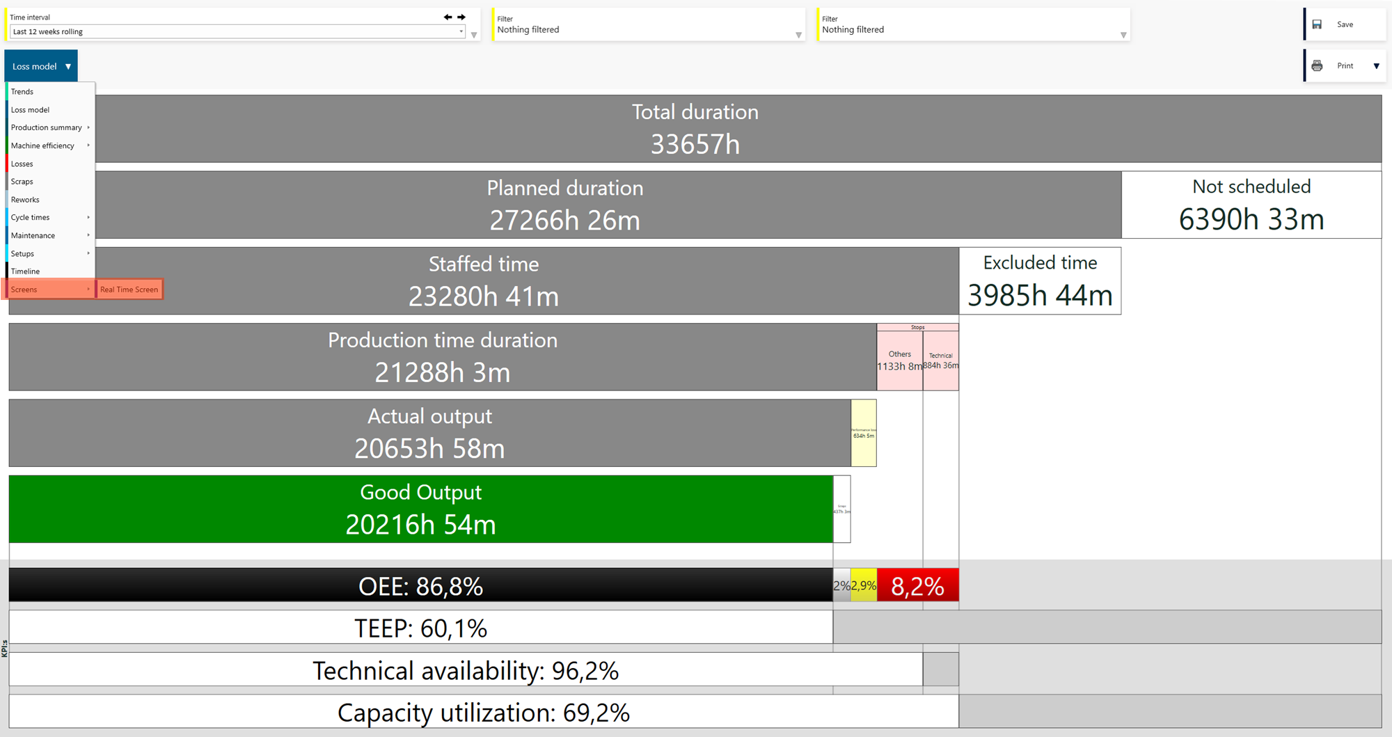 The pages created with Screens can be shown in Info Screens, Office tools reports and in Operator tools.