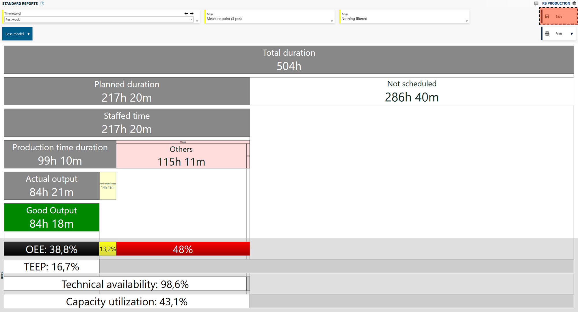 In Office tools reports, find the report you want to show in an Info Screen and make the filterings and selections you want to use. Then, click Save in the upper right corner.