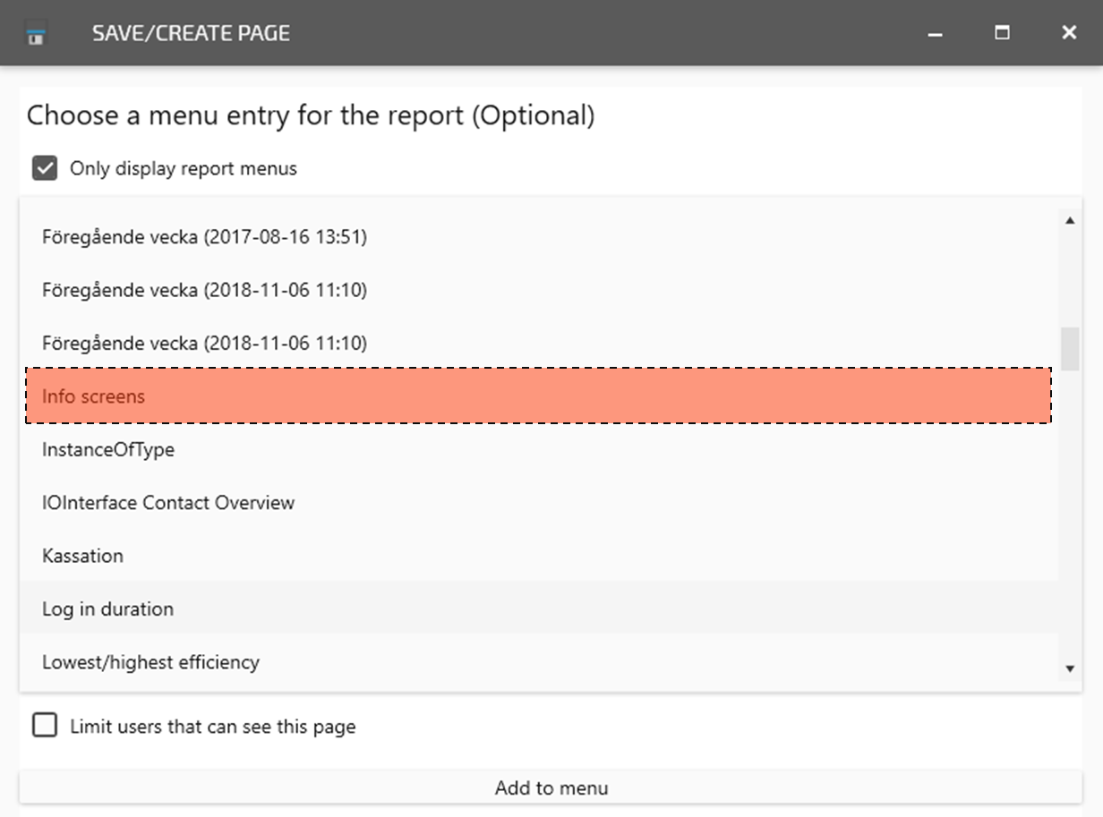This guide helps you step by step to save a report page and make it available as a page for Info Screens.